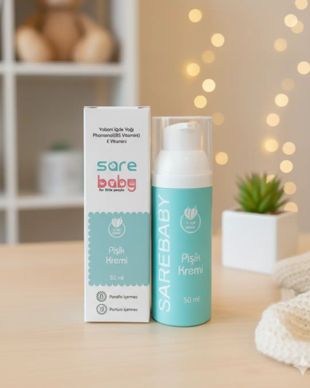 Bebek cildinin ihtiyaç duyduğu doğal ve güvenilir bakımı sunan Sarebaby pişik kremi, %100 doğal içeriğiyle ebeveynlerin gönül rahatlığıyla tercih ettiği özel bir üründür. Çinko oksit sayesinde pişik oluşumuna karşı güçlü bir bariyer oluştururken; papatya suyu, kantaron ve calendula yağlarıyla hassas cildi yatıştırır ve onarmaya yardımcı olur. Shea yağı, hindistan cevizi yağı ve gliserin ile cildin nem dengesini korur, uzun süreli yumuşaklık sağlar. Paraben, parfüm ve sentetik kimyasal içermeyen formülüyle günlük kullanıma uygundur. Sarebaby pişik kremi, bebeğinizin cildine doğallıkla dokunan, güven veren etkili bir bakım sunar.